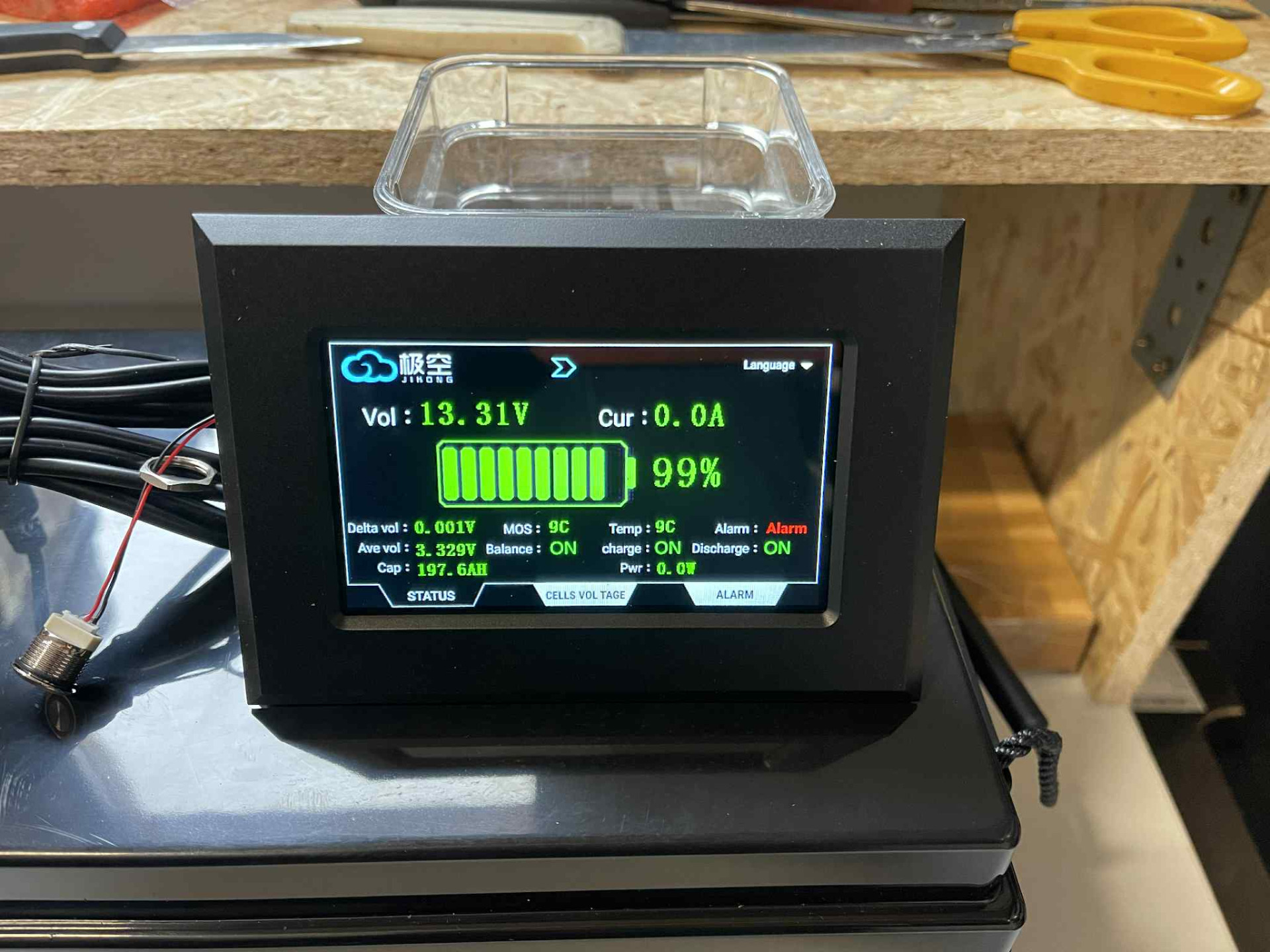 200 Ah lifepo4 s aktivní 200A JK BMS, Bluetooth a výhřevem a 4,3" Jikong externím displejem a vypínačem BMS