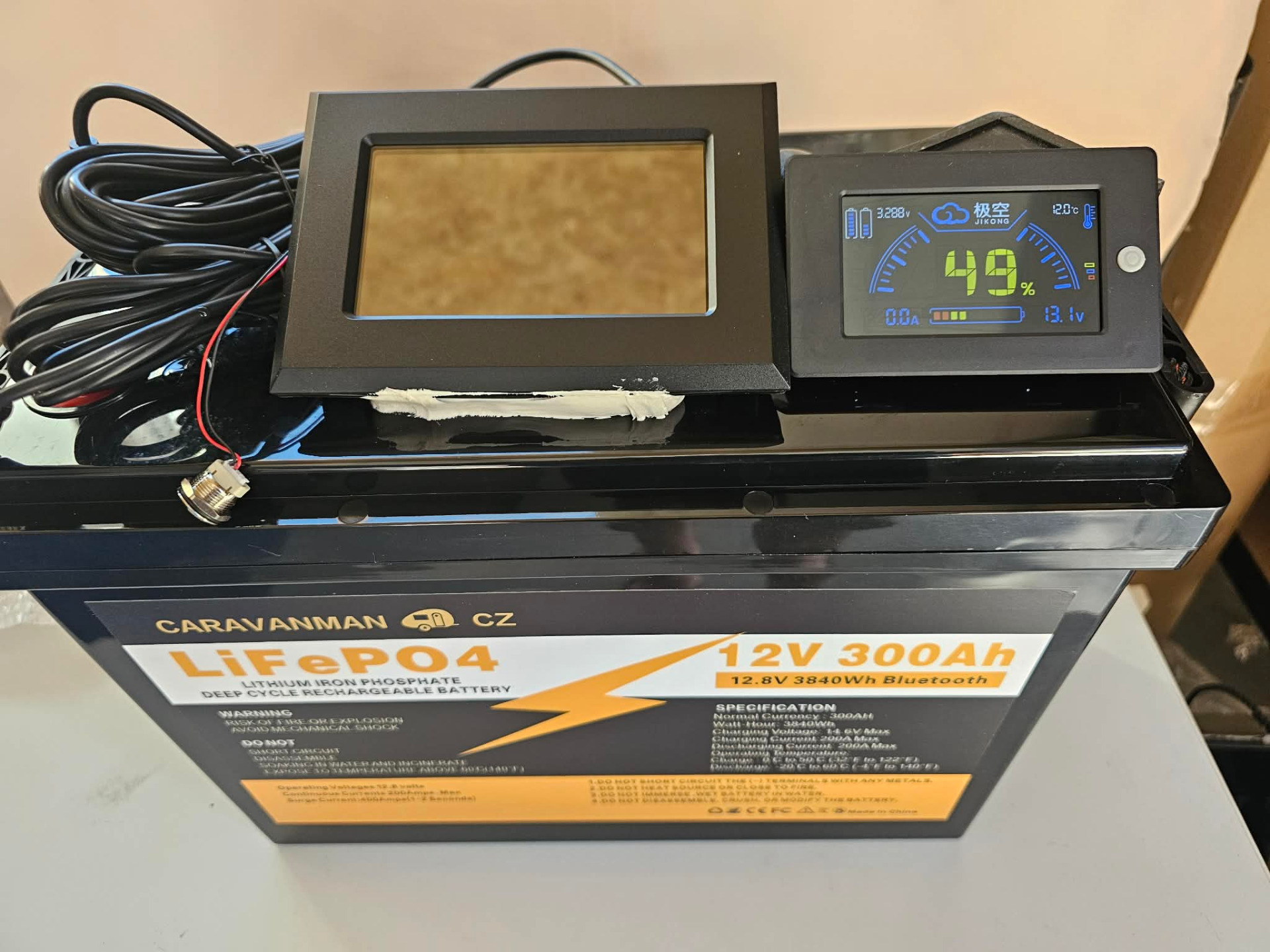 300 Ah lifepo4 s aktivní 200A JK BMS, EVE články, Bluetooth , výhřevem a konektorem pro vypínač BMS nebo pro externí Jikong LCD displeje - skladem 3,2" za 3,2"
