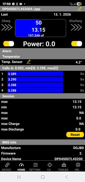 300 Ah lifepo4 s pasivní 200A JBD BMS, EVE články, Bluetooth a výhřevem