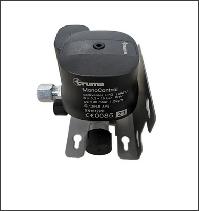 Truma MonoControl CS je plynový regulátor s integrovaným havarijním senzorem, navržený pro bezpečný a spolehlivý provoz plynových spotřebičů v karavanech a obytných vozech. Tento model je určen pro připojení k jedné plynové lahvi a zajišťuje stabilní snížení tlaku z lahve na potřebný provozní tlak spotřebičů, jako jsou například karavanová topení.